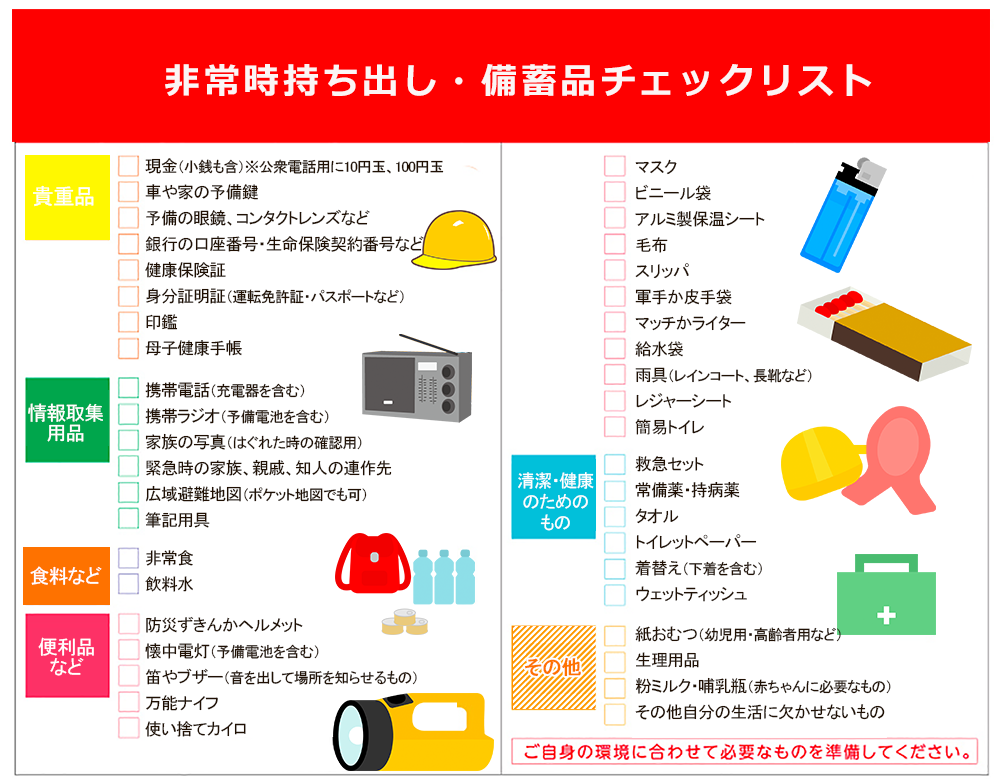 • 非常時持ち出しリスト